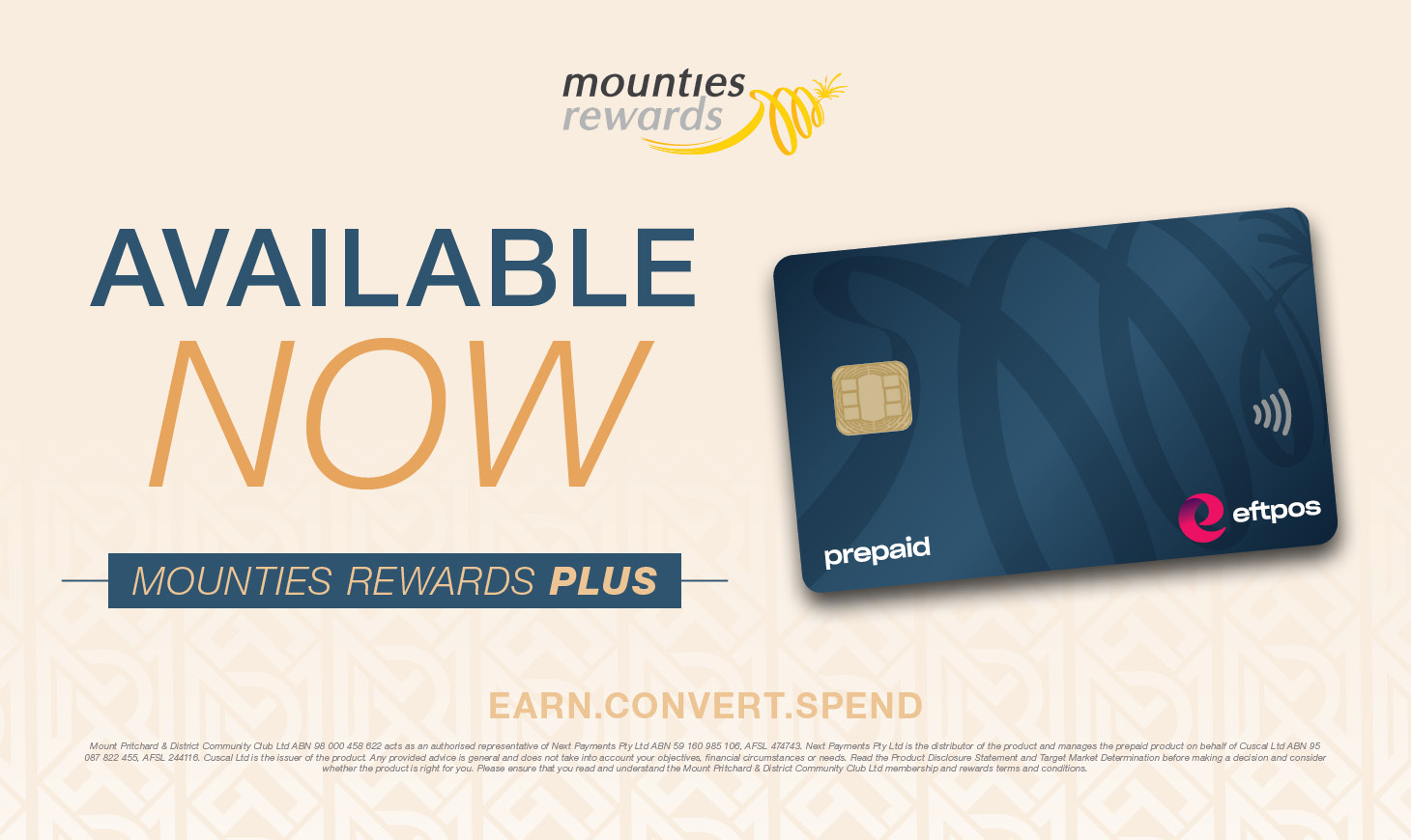 Convert your Mounties Rewards Points into eftpos where you can spend anywhere which an eftpos machine.